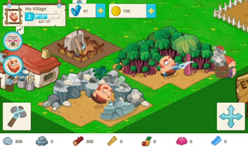 You begin with a little pre-historic hamlet: a big weird rock monument, a storage area, a couple of houses. The mechanics revolve around harvesting resources and building structures. By completing quests you earn experience and level up, unlocking new buildings and decorations for your village.