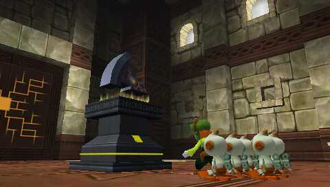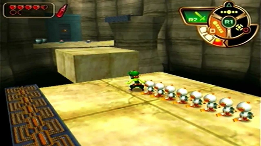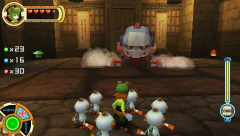 So what do you do with Tokobots? In addition to following Bolt around, they also walk in formations. They also have an ability called “jointing,” in which literally everyone joins hands, and depending on what formation you are in, perform various tricks to bash barrels, climb walls with special magnetic strips, or even defeat enemies. The first level of the game helps you learn these jointing techniques. You go around picking up these items called “Karakuri parts” which allow you to activate more combination moves. So as you fulfill certain conditions, your Tokobots learn new tricks.