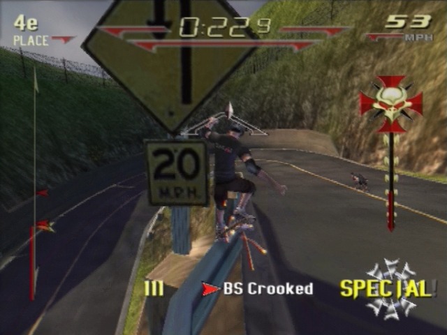Aside from the single-player story mode, there is a quick play race mode and also a split-screen multiplayer component for up to 4 skaters. The events in multiplayer include Race, Slalom, Eliminator, Trick and something like tag called Steal the Head, where you must be in first place the longest.