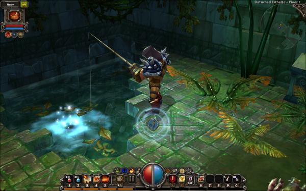 Fish are special consumable items that you feed to your pet to turn it into other creatures and give it that specific creature’s abilities. You can start fishing right in the beginning while in town, but keep an eye out for these spots inside the dungeons, since you can get different kinds of fish. Fishing spots will be easy to recognize. Simply click on them to fish, which starts a mini-game of sorts: you must click when the outer ring aligns with the icon to fish successfully. Fishing sometimes can become a break from the hack-and-slashing that goes on inside the dungeons.