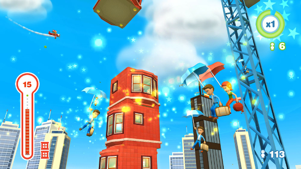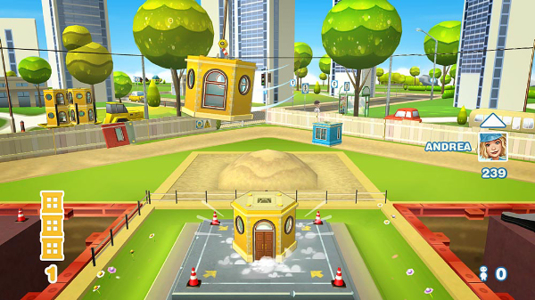 As you build the tower, pieces dangle from a string at the top of the screen, and the tower itself sways back and forth in the wind, becoming more aggressive in its movements as the tower grows in height. Depending on the game mode (Quick Play, Time Attack or Build a City), you are given a varying level of leeway in terms of how many floors you can miss before your tower ends and you are given your score.