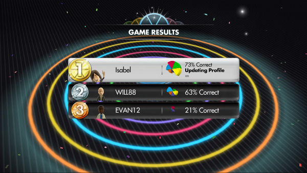 Before beginning the game, you are required to create a profile, complete with name and avatar, for each human player who is taking part, with each specific profile allowing the game to keep track of each player’s individual performance. That is, after playing a game, it will give you a detailed run-down of how many questions you answered both correctly and incorrectly and in what category, how many games you’ve won, lost, and so on. A nice touch, but only for those who will be spending any more than a couple of hours with the game, which, unfortunately, won’t be many.
