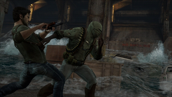 Speaking of shooting segments, the gunplay in Uncharted 3 is decidedly different than the other two games, in that the control and sensitivity have been altered. I don’t know if this change was to make the game more cinematic than before but it can definitely be frustrating when you’ve become used to how Uncharted 2 played. Besides, nothing really seemed wrong with the way it played before, so this change seems completely unnecessary.