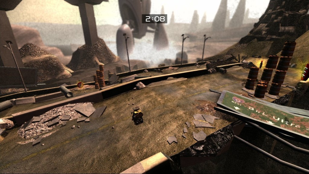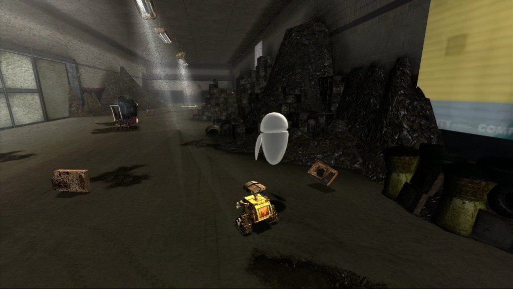 Since the game was based on a movie by the geniuses at Pixar, of course the graphics are in line with some of the cutest things I’ve ever seen. There is very little dialogue in the game; instead, Wall-E’s facial expressions tell the tale, and while blocky robots may not seem very cute on paper, I know that I have never said “awww” so many times while playing a game before. It is very easy to become attached to the characters throughout the game, especially when the playing world is filled with depressing images such as broken down sky-scrapers, vehicles, and other items from Earth’s once glorious past.