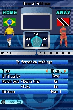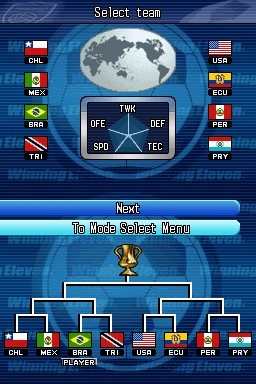 The DS version brings new leagues and new teams that aren’t in the Winning Eleven console versions. It also offers four different gameplay modes: World Tour, Tournament, Konami Cup and Multi-player.