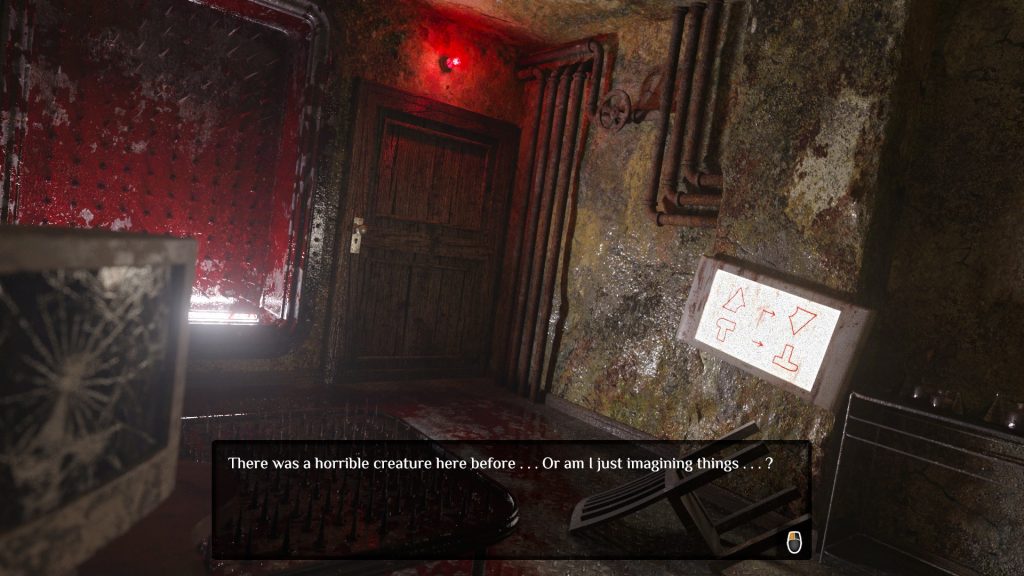 After some progression, I discovered the bathroom had been turned into something that could have very well be Silent Hill, and the lost and confused feeling was replaced by a constant uneasiness that something was going to come at me and shred me to bits. Also at some point, the game managed to convinced me that it crashed and froze… Just as I was about to press ctrl+alt+del, it loaded me into that Silent Hill-esque type of alternate reality.