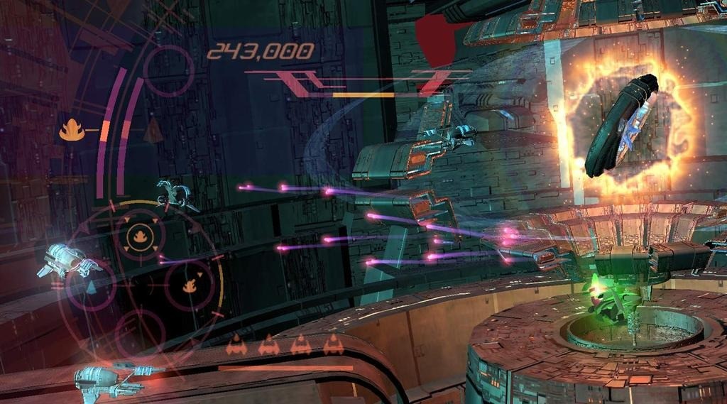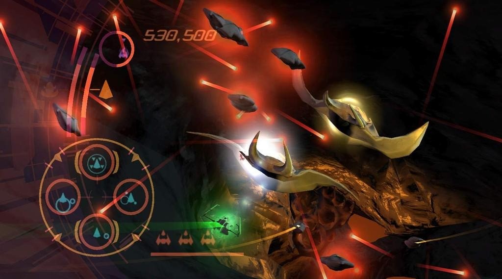 The path your ship takes is pretty much pre-set, aside from a few instances where you can pick which way to go, but don’t think this plays like a side-scrolling 2D shooter. Well, maybe at it’s core, it somewhat does, but when the camera changes from front to back or a side view right in the middle of frantic combat, you are in for some unique experience.