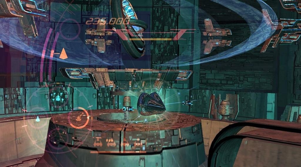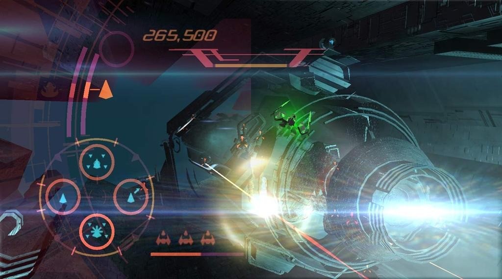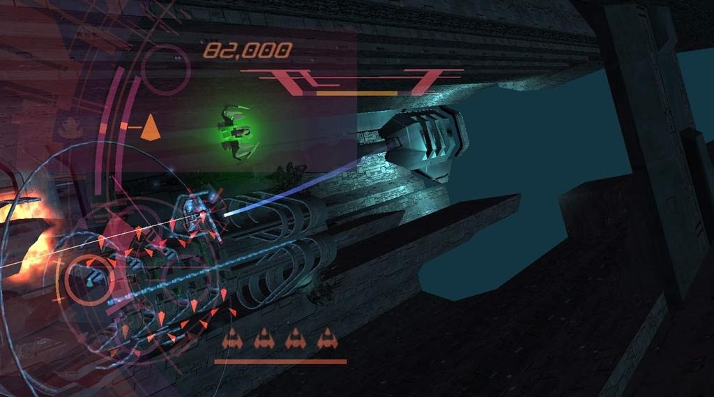 The game is presented in a third-person view. You, as the pilot, find yourself in a ship, zooming through corridors and small spaces, while a series of enemies come at you from all directions.