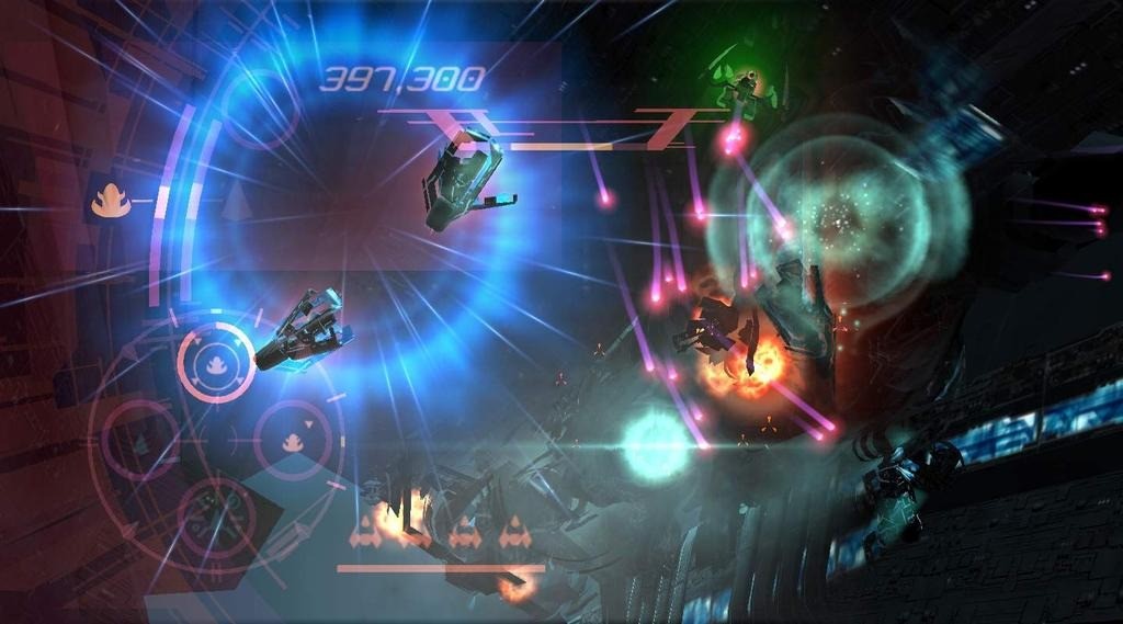 You navigate by using the left thumbstick and control your weapons with the right thumbstick, so you can move one way and shoot another way. The ship has two weapons (you can switch between them by using the right trigger): one is particularly good for smaller enemies since it spreads the shots, the other is a beam that is very effective on big targets. Weapons can also mutate by using Xyanide, which certain enemies can drop, and they can mutate into organic or mechanic (or a mix of both).