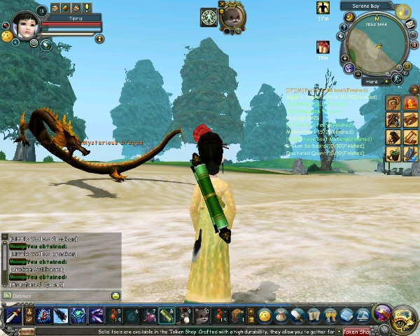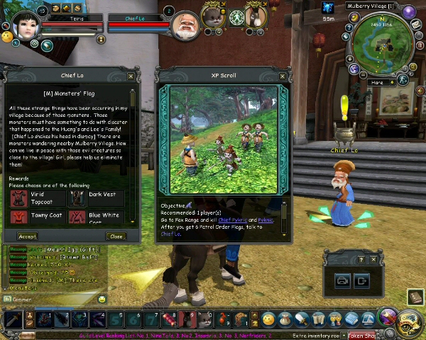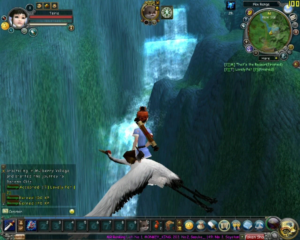 What’s even weirder is that while on a quest that asked me to kill 20 of a certain group of enemies, I found a mysterious character coming to my aid. I still don’t know why or how it happens, but here comes some guy on a giant panda attacking my stuff… First I got mad because I thought this was your typical MMO douchebag trying to steal my quest mobs, then I realized it was an NPC. But it got even weirder when some other little old Chinese NPC floating on a white cloud came over and said something about a Chance encounter/quest. I don’t know what happened. I guess it was a random encounter of some sort, but in between the killing tons of things while the guy on a giant panda went berserk on everything else, I had no clue what was going on. But it was fun.