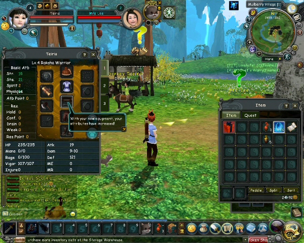 Chicken butts aside, there is plenty to do in Zentia. You are able to learn life skills: monster taming, wood working, gathering, hunting, mining and so on. Everyone gets to capture and tame monsters, and then the other two skills you pick from those available. Randomly you find Maze Scrolls that instantly transport you to a maze of flowers where you must find the exit to receive a treasure. When you level (not every level though) you get to open a “present” with a few goodies inside. There are also events you can join, daily quests, group instances and PvP combat after level 20.